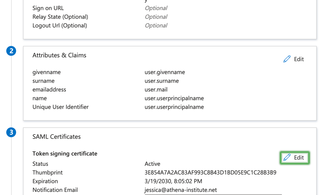 Next you will update the signing and encryption settings. First select the Edit icon.