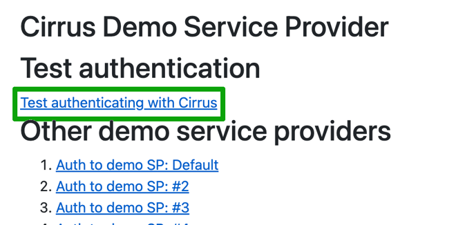 Click on the link for ‘Test authenticating with Cirrus’’.