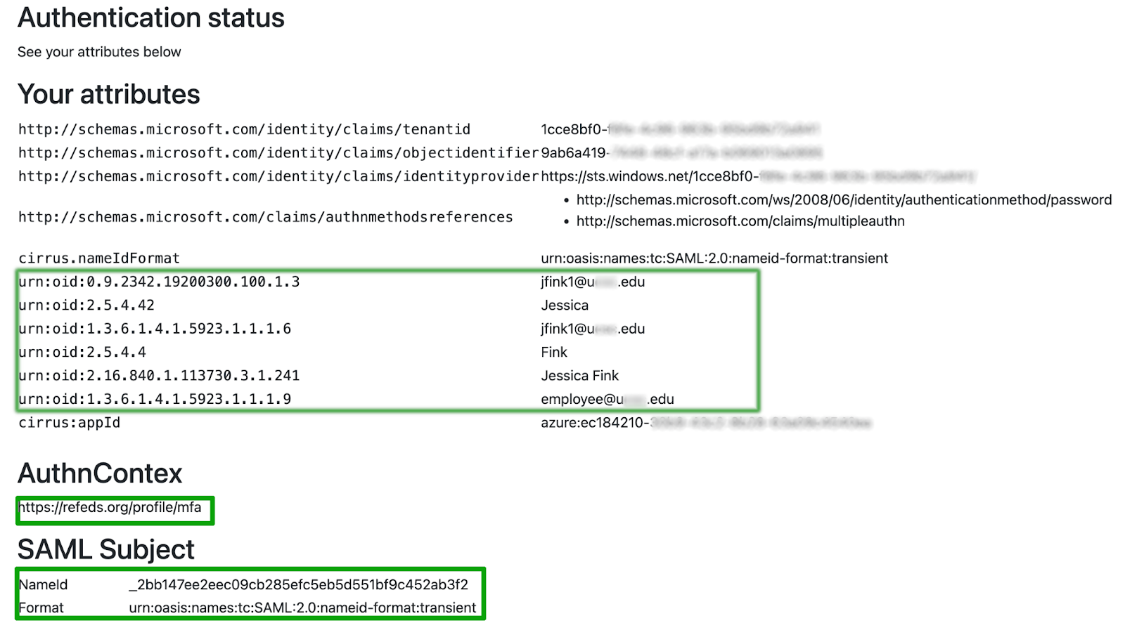 Verify that your attribute values are correct, that the AuthnContext comes through as https://refeds.org/profile/mfa, and that the SAML Subject NameID and format are coming through as expected. The default NameID format is usually transient with a random value for the NameID itself.