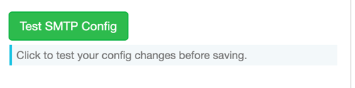 To test if the SMTP configuration is complete, press the “Test SMTP Config” button. This will send a test message containing the configured parameters to the email address of the admin currently logged into the console.